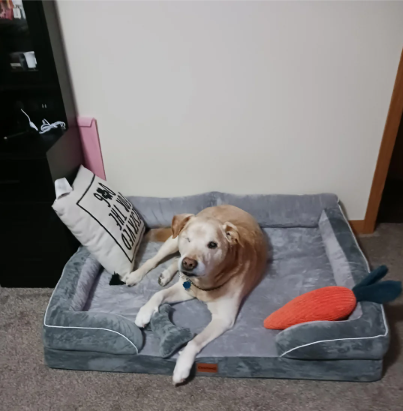 "After my 12-year-old Lab started struggling with stiff joints, this orthopedic bed was a game-changer! He sleeps so much better now, and the memory foam support is perfect. Shipping was fast at 4 days—thank you, BestFriendsFurEver! 🐶"